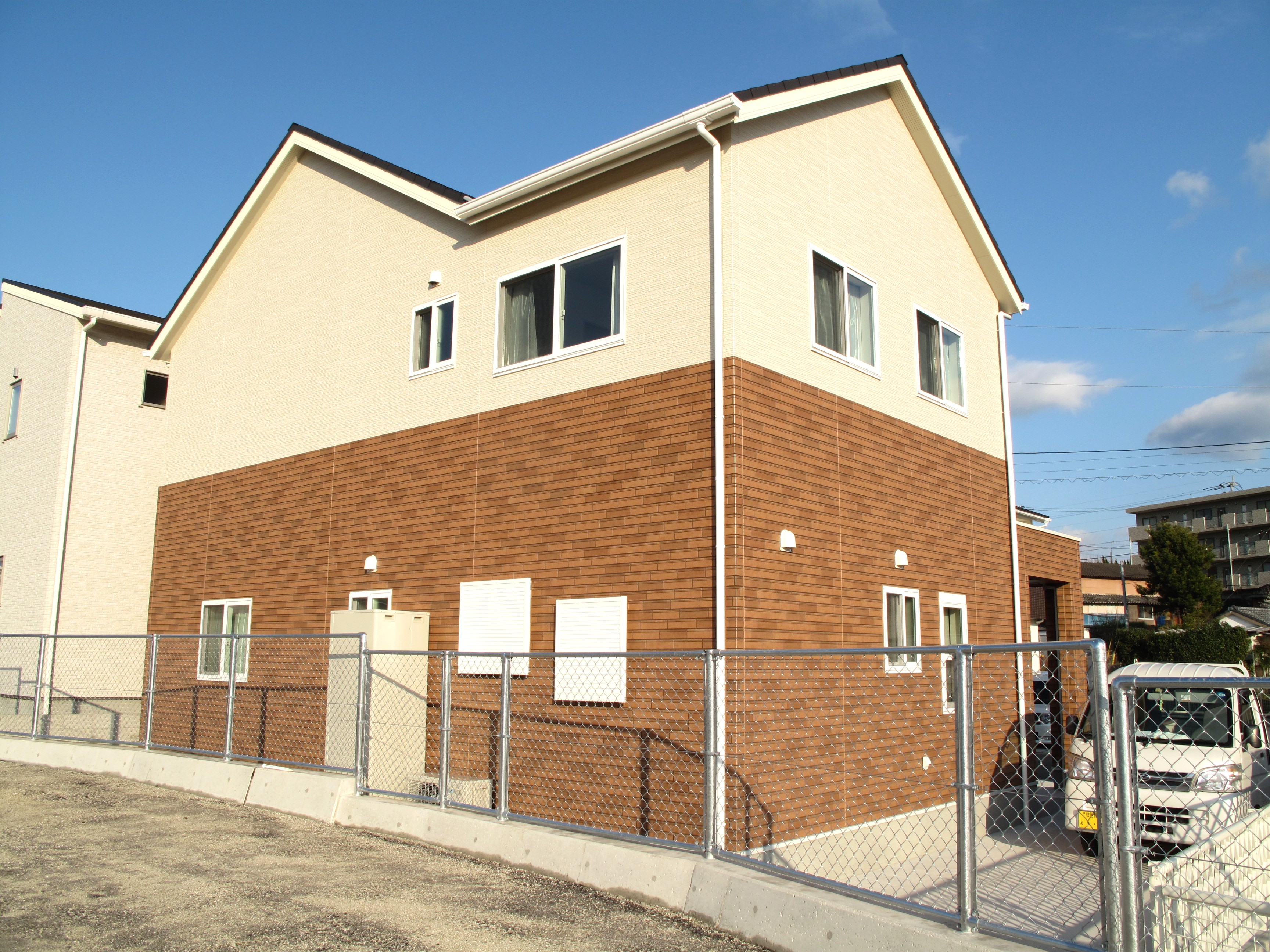 外観はスマートかつ重厚感あるレンガ調とし、風格あるデザインになりました。室内は壁を白とし床はウォールナットと深みのある色合いを選び落ち着きのあるナチュラルな仕上がりとなりました。